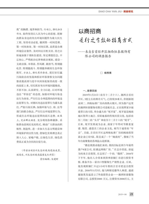 决群众身边的突出环境问题作为最大民生 是行之有效的招商方式