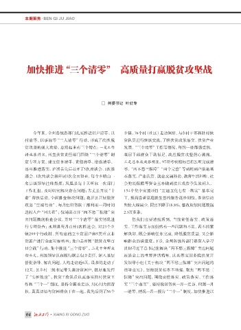 日会战”行动,集中推进“三个清零”。二是干部群众 贯彻习近平总书记在解决“两不愁三保障”突出问题