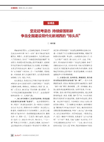 站在新起点,保靖县坚定不移以习近平新时代中 好全面建设现代化新保靖“第一棒”。一是全力巩