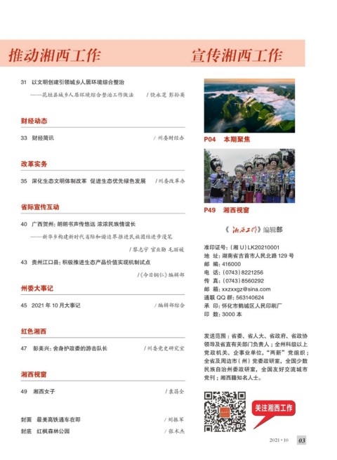45 2021 年 10 月大事记 / 编辑部综合 承 印:怀化市鹤城区人民印刷厂