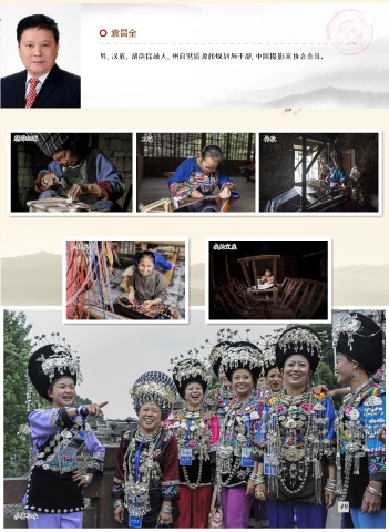 袁昌全 男,汉族,湖南保靖人,州自然资源和规划局干部,中国摄影家协会会员。 精雕细琢 工艺 传承 精雕细琢 织锦高手 我的宝座 2021 • 10 49 参赛归来