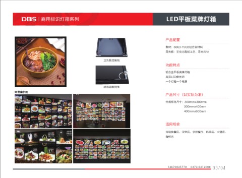 铝合金平板菜牌灯箱
