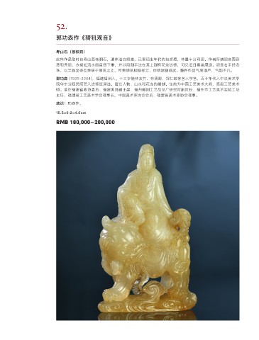 珠,以半跏坐姿态乘骑于狮犼之上,所乘狮犼脚踏祥云,体貌端健威武。整件作品气度谨严,气韵不凡。
