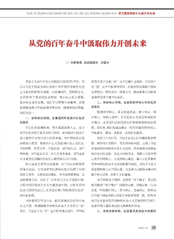 主义政党建设做出历史性贡献的伟大奋斗历程。 志党中央的核心、全党的核心地位,确立习近平新时