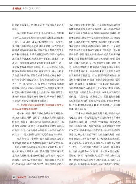二、主动顺应新形势新要求,加快构建生态文化 局,扎实推进旅游发展全域化、供给品质化、治理规