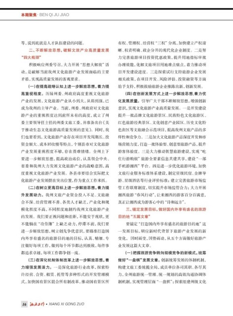 产业的发展,文化旅游产业从小到大,从弱到强,已 化发展质量。引导广大干部不断解放思想,增强创新