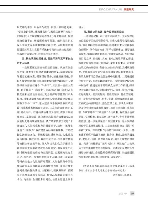 的育人环境 帮助纪检监察全面了解情况、聚焦工作重点,对审计