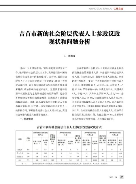 参政议政问题,对于进一步发挥新的社会阶层人士 会阶层代表人士中有3名同时兼有代表和委员身份。