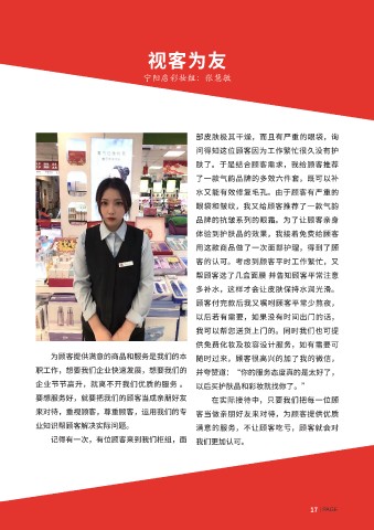 柜组里的商品都没达到顾客满意。 大的收获。”所以把顾客的事放心上,帮助 体验到护肤品的效果,我接着免费给顾客