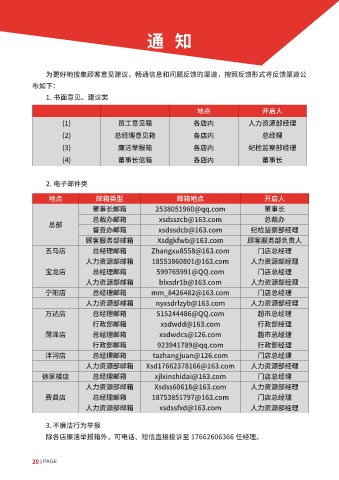 (1) 员工意见箱 各店内 人力资源部经理