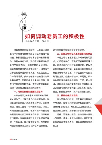 积极。给员工建立一个共同的目标,使员工 激发他们的好奇心,尤其是入店已久的员工,