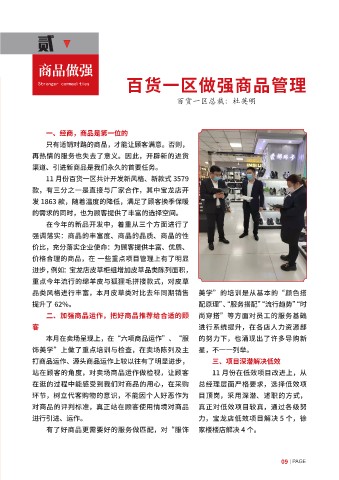 度发生转变。没有购物的顾客,同样是潜在顾客,也会口口传播他们的购物感受。所以,要 在逛的过程中能感受到我们对商品的用心,在采购 总经理层面严格要求,选择低效项