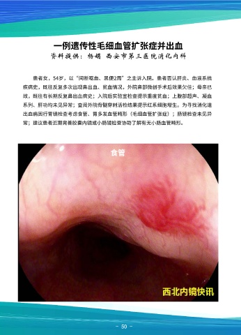 出血病因行胃镜检查考虑食管、胃多发血管畸形(毛细血管扩张症);肠镜检查未见异