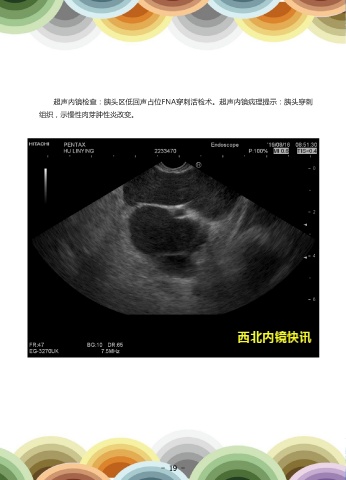 患者女,78岁,因“左下腹阵发性疼痛2月”就诊。胰腺平扫+增强CT示:1.胰尾                                        超声内镜检查:胰头区低回声占位FNA穿刺活检术。超声内镜病理提示:胰头穿刺