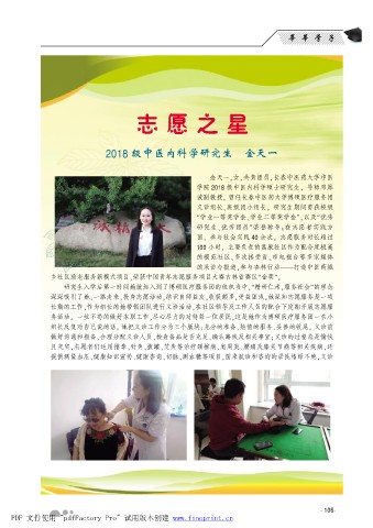 研究生入学后第一时间她就加入到了博硕医疗服务团的组织当中袁野精研仁术袁服务社会冶的理念