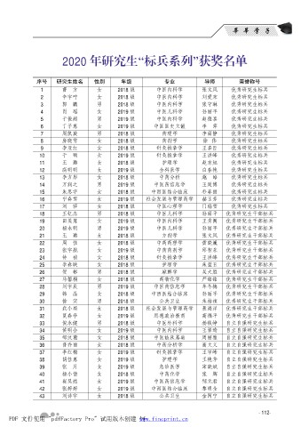 2020 年研究生野标兵系列冶获奖名单