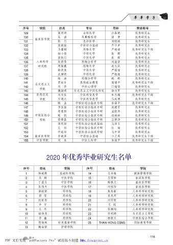 2020 年优秀毕业研究生名单