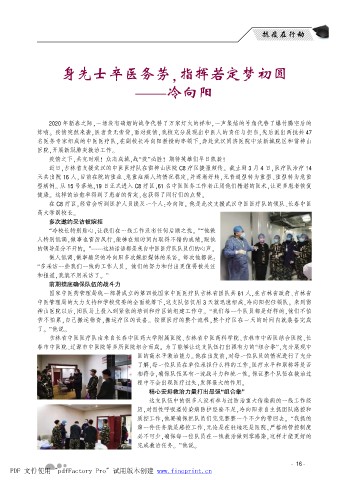 历袁对烈性呼吸道传染病防护经验不足袁冷向阳亲自主抓团队感控和
