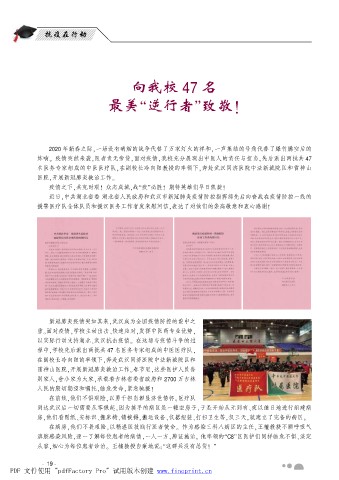 炸响遥 疫情突然来袭袁医者责无旁贷袁面对疫情袁我校充分展现出中医人的责任与担当袁先后派出两批共 47