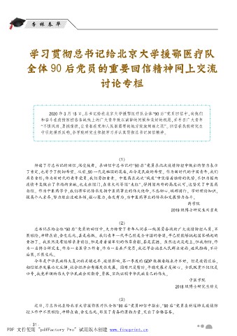 2020 年 3 月 15 日袁总书记给在北京大学援鄂医疗队全体野90 后冶党员回信中袁向他们