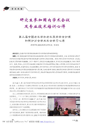 10 月 23 日袁第三届中国老年学和老年医学学会护理和照护分会学术年会在京举行袁会议以野融合 窑 创