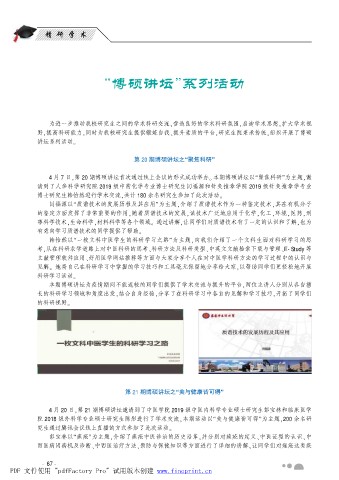 4 月 7 日袁第 20 期博硕讲坛首次通过线上会议的形式成功举办遥 本期博硕讲坛以野聚焦科研冶为主题袁邀