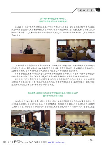 本期博士研究生学术工作坊让同学们对干细胞等微观生物有了新的认识袁对学术不端行为危害性及哪