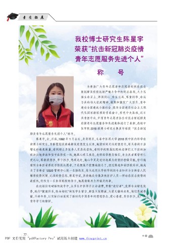医学院 2018 级博士研究生陈星宇荣获 野抗击新冠