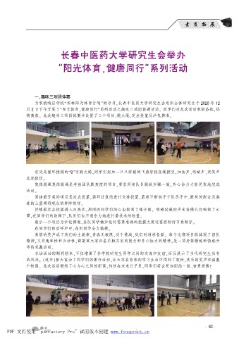 为积极响应学校野杏林阳光体育计划冶的号召袁长春中医药大学研究生会组织全体研究生于 2020 年 12
