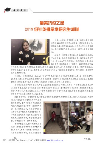 力袁2019 年 9 月袁她终于不负众望开始了梦寐以求的研究生生活袁她不断的学习专业知识袁增强临床技能袁她