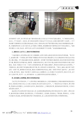 员午餐袁摆好饮用水和餐巾纸袁看着第一班换岗的组员吃上热乎乎的午餐袁他转身再返回到缓冲区换上防护