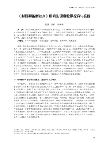 探究不同制备新技术、新工艺以及实现新材料的开发和实际应用的一门理论与实践并重的课程,内容