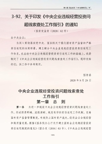 制定了《中央企业违规经营投资问题线索查处工作指引》,现印发给