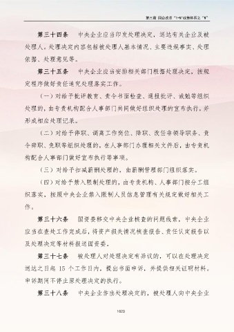 第三十五条 中央企业应当安排相关部门根据处理决定,按规