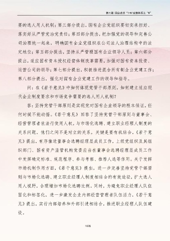 要的选人用人机制;第三部分提出,国有企业党组织要切实承担好、