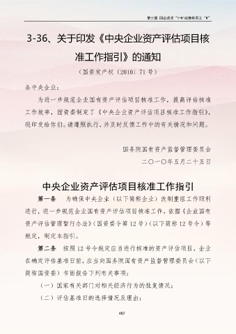 工作效率,国资委制定了《中央企业资产评估项目核准工作指引》,