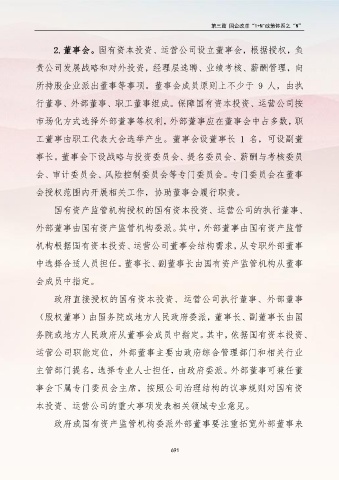 2.董事会。国有资本投资、运营公司设立董事会,根据授权,负
