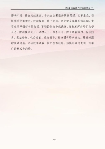 第三篇 国企改革“1+N"政策体系之“N” 影响广泛、社会关注度高。中央企业要坚持解放思想、实事求是,积 极稳妥统筹推进,鼓励探索、勇于实践,建立健全容错纠错机制,宽 容在改革创新中的失误。要坚持依法合规操作,注重发挥内外部监督 合力,做到规则公开、过程公开、结果公开,防止暗箱操作、低价贱 卖、利益输送、化公为私、逃废债务,杜绝国有资产流失。要及时跟 踪改革进展,评估改革成效,推广改革经验,加快形成可复制、可推 广的模式和经验。 759