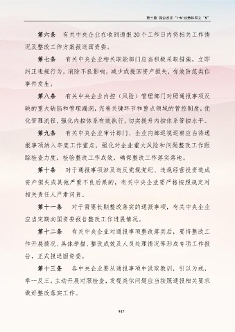 第六条 有关中央企业在收到通报 20 个工作日内将相关工作情