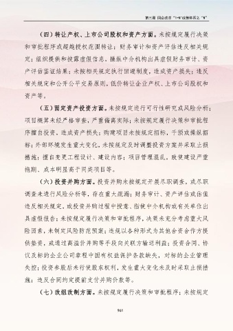 (四)转让产权、上市公司股权和资产方面。未按规定履行决策