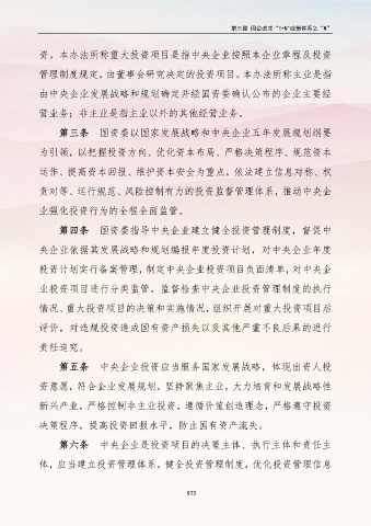 资。本办法所称重大投资项目是指中央企业按照本企业章程及投资