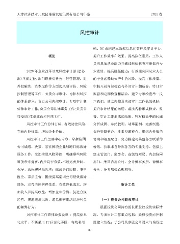 外投融资、资本运作等方面的风险评估、风险 积极开展内部检查与外部审计相结合,将日常