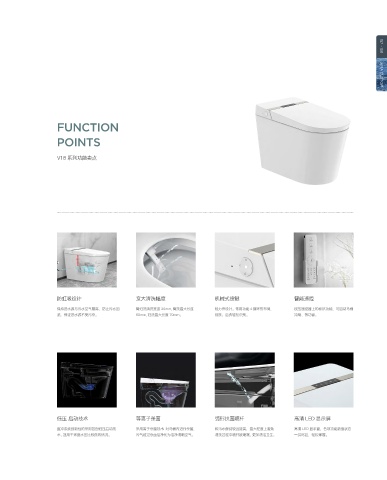 直冲系统创新性的采用首创低压启动技 采用离子杀菌技术:对马桶内进行杀菌, 和污水保持较远距离,最大程度上避免 高清 LED 显示窗,各项功能数值状态
