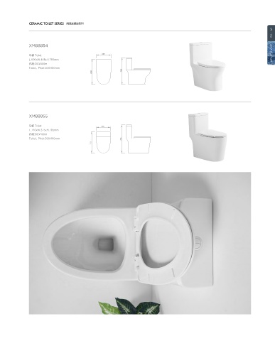 CERAMIC TOILET SERIES 陶瓷坐便器系列 171 XM88854 172 405 XIMA CUSTOM 马桶 Toilet L.690xW.405xH.750mm 孔距:300/400m Toilet,Pitch:300/400mm 690 750 XM88855 马桶 Toilet 375 L.710xW.375xH.765mm 孔距:300/400m Toilet,Pitch:300/400mm 765 710