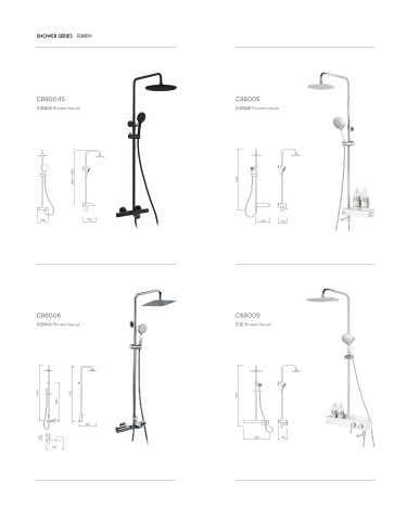 SHOWER SERIES 花洒系列 183 C88004S C88005 花洒恒温 Shower faucet 花洒恒温 Shower faucet 905~1287 1260 298 162 310 135 C88006 C88009 花洒恒温 Shower faucet 花洒 Shower faucet 1310 550 140