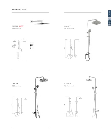 SHOWER SERIES 花洒系列 185 186 C88072 NEW C88077 XIMA CUSTOM 花洒 Shower faucet 花洒 Shower faucet 400 预埋深度60-83mm 130 180 1250(建议尺寸) C88078 C88079 花洒 Shower faucet 花洒 Shower faucet 1250 325 110