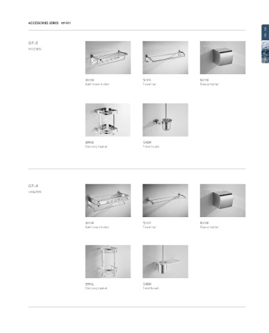 ACCESSORIES SERIES 挂件系列 189 GT-3 190 5件套挂件 XIMA CUSTOM 浴巾架 毛巾杆 纸巾架 Bath towel holder Towel bar Tissue holder 置物篮 马桶刷 Carrying basket Toilet brush GT-4 5件套挂件 浴巾架 毛巾杆 纸巾架 Bath towel holder Towel bar Tissue holder 置物篮 马桶刷 Carrying basket Toilet brush