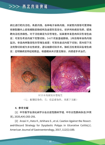 >>> 西北内镜快讯 资料提供:交大二附院消化内科 赵菊辉 UC合并高级别异型增生 (左:靛胭脂染色;右:结晶紫染色。来源于文献) - 35 - - 36 -