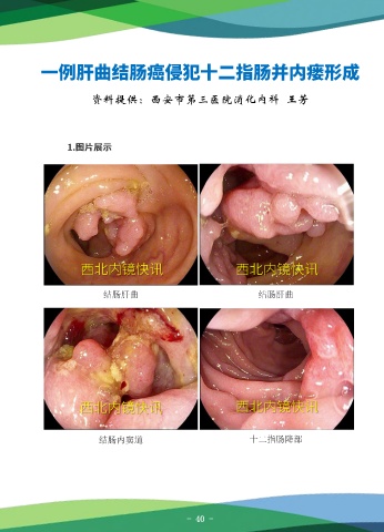 >>> 西北内镜快讯 资料提供:西安市第三医院消化内科 王芳 结肠肝曲 结肠肝曲 结肠内窦道 十二指肠降部 - 39 - - 40 -