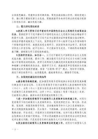 7.进一步加强党委领导下行政领导人负责制单位的党建工作。对实行